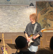 白土 庸介 Yosuke Shirato(Guitar) 1968年、東京生まれ。元クリエイションの竹田和夫 氏に師事。1995年よりバイオリン 渡辺剛のサポートバンドに参加。1996年自己のバンド「The Great Dragonfly」CDリリース。1998年椎名へきるの全国ツアー及びレコーディングに参加。ギター&ベース講師就任。2004年、シャンソン歌手の貝山幸子フランス公演、Danny Summer香港公演に参加。2006年、竹田和夫の来日公演に参加。2007〜2008年、Blue Man Group ラスベガス&東京公演に出演。近年は、ほさか夏子など、シャンソン歌手からの信頼が厚い。 2023年1月に放送されたドラマ「しょうもない僕らの恋愛論」にギター指導者として参加した。 (※今ライブのパンフレットより転載) |